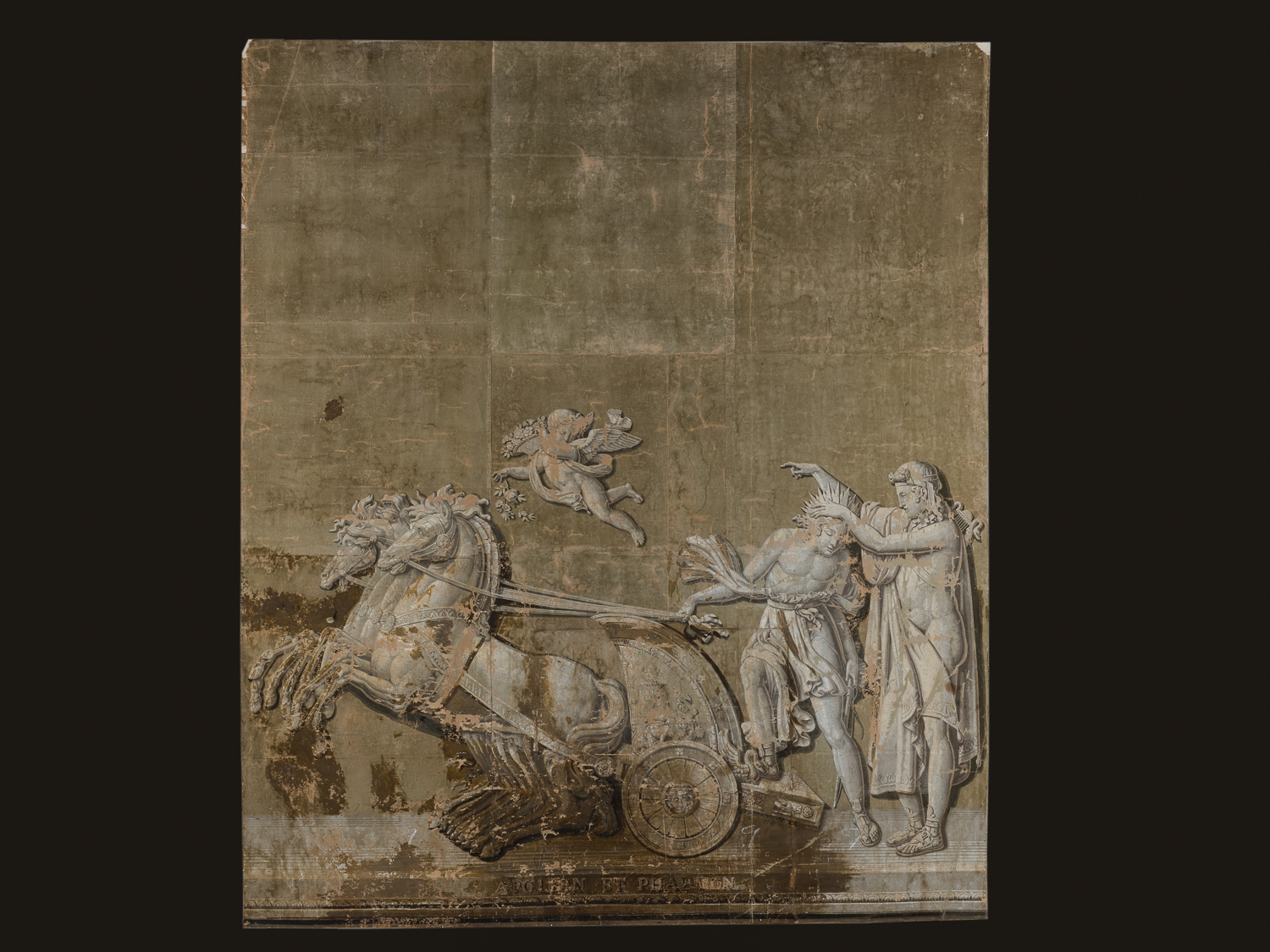 Designed by Jacques-Christopher Xavier Mader (1789-1839), the original edition of La Galerie Mythologique included six Empire style decorative panels, consisting of these two and Vengeance of Ceres, The Muses, The Judgement of Paris, and Time and the Seasons.