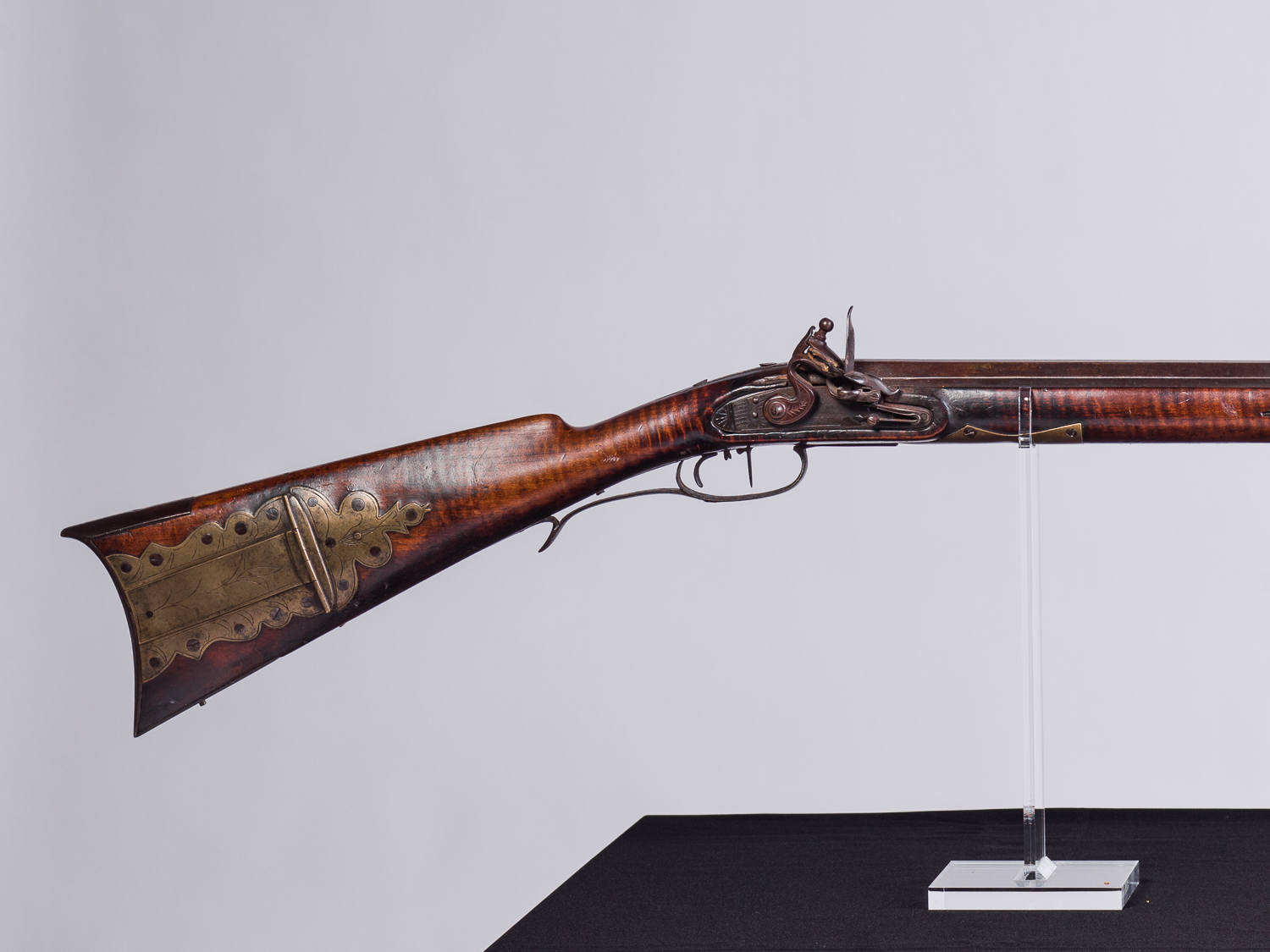 Rifles made in Rockbridge have a reputation for being sturdy with a pronounced stock comb and imaginative patch boxes. William Bogan (b. 1778) is a rare maker and one of the few documented in Rockbridge County, VA. It is unclear from whom Bogan learned the art of rifle making but this rifle was made in the tradition of the southern Shenandoah Valley school.