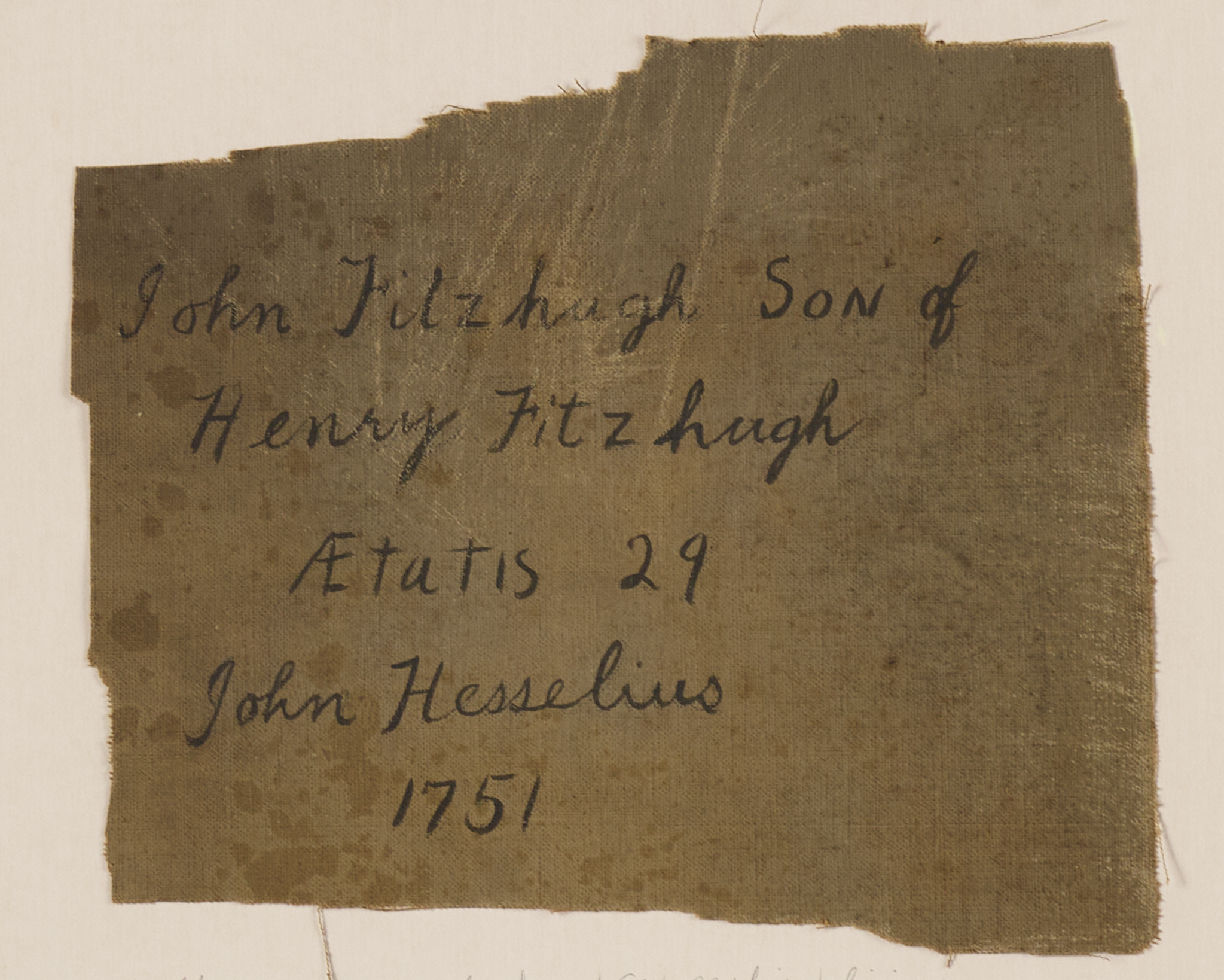 “John Fitzhugh, Son of/ Henry Fitzhugh/Aetatis 24/ John Hesselius Pinx/ 1751″