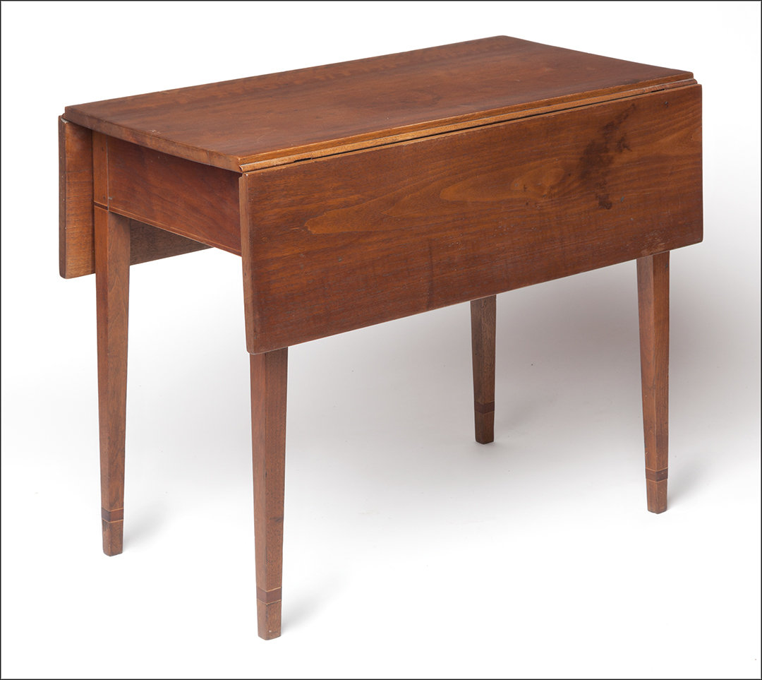 Walnut Pembroke Table, Tapered Legs with Cuff Banding, Inlaid Skirt Rails, Diagonal Brace